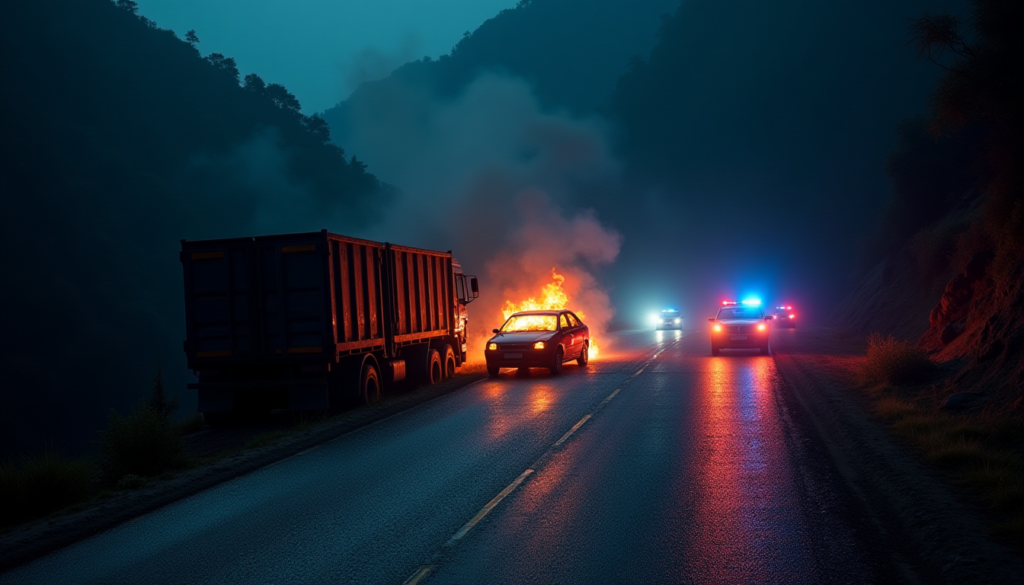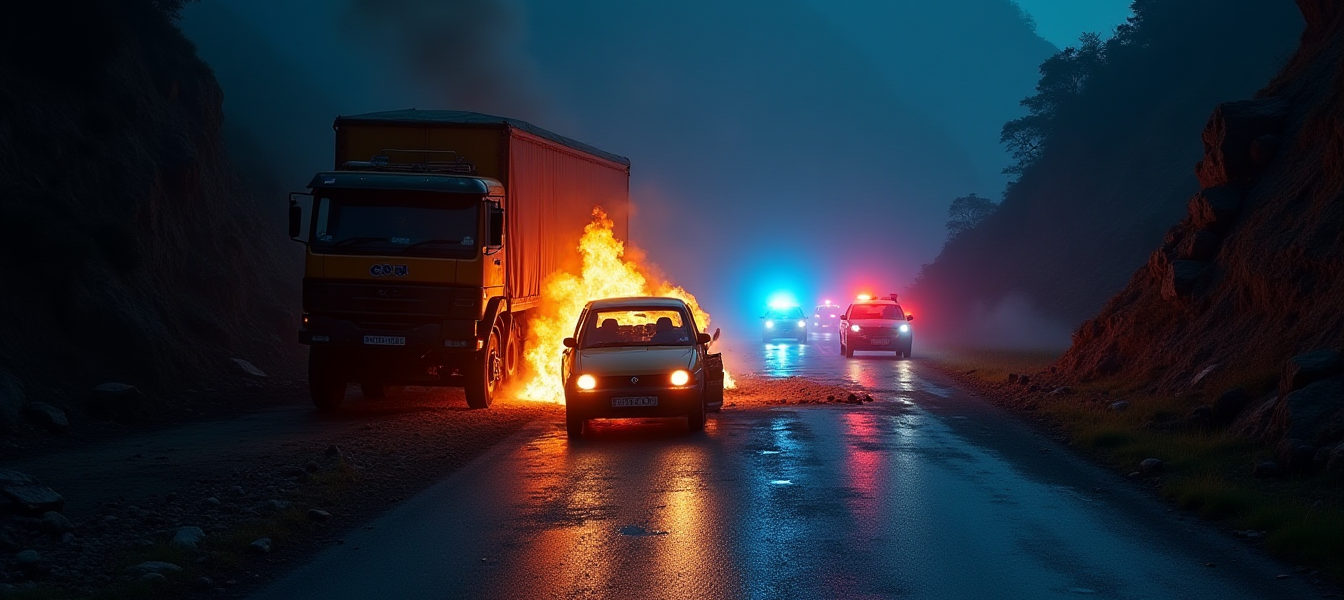 Çarpışmanın şiddetiyle araçlar arasında sıkışan bir Swift Dzire model otomobil anında alev aldı. Görgü tanıkları, otomobilin saniyeler içinde bir alev topuna döndüğünü belirtti. Kazaya karışan araçlar arasında Bihar ve Madhya Pradesh plakalı ticari araçların yanı sıra yerel halka ait binek otomobillerin de bulunduğu bildirildi.