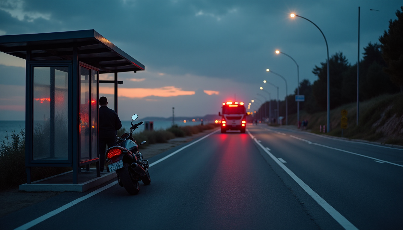 Kuşadası’nda Dehşet Anları: Kontrolden Çıkan Motosiklet Otobüs Durağına Daldı!