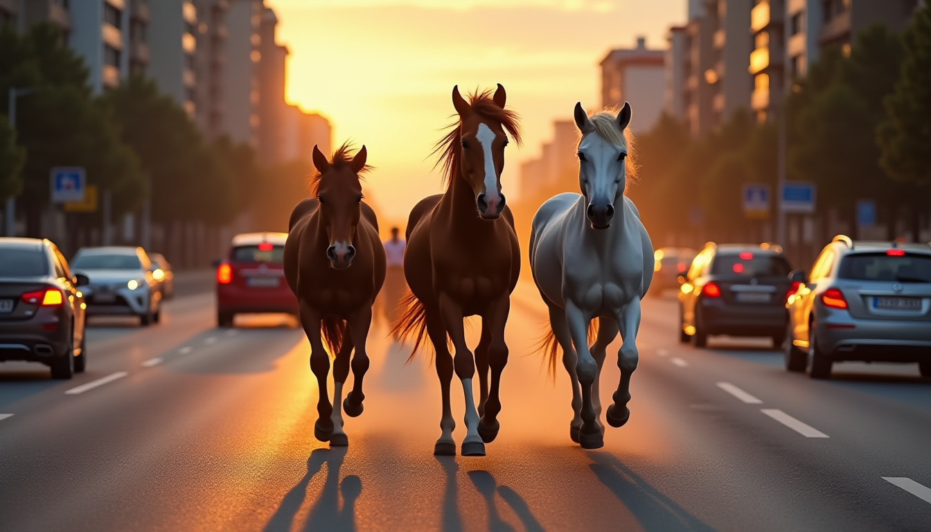 Şehrin Göbeğinde Dörtnala Kaos: Başıboş Atlar Trafiği Kilitledi!
